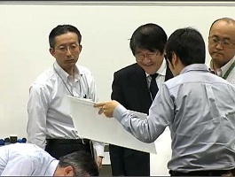 記者会見場の東京電力広報の方を通してJ-ヴィレッジの掲示物を改善してもらう