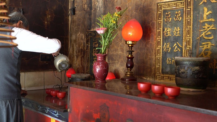In Taiwanese folk belief, zhongyi (devotion and righteousness) does not signify loyalty to authority, but rather a form of moral devotion to the local community. However, during the period of Japanese colonial rule and later during the White Terror era, the term '忠 zhong' was incorporated into state ideology in different ways and, at times, functioned as a mechanism for emphasizing loyalty to the nation-state. Against the backdrop of escalating political tensions involving China and Japan around Taiwan, the artist conceived the fiction that “the concept of people’s zhong (devotion) is stolen,” and developed the work as a video installation.